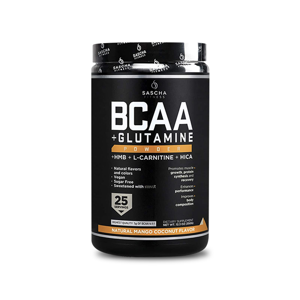 Sascha Fitness BCAA MANGO COCO + Glutamina, HMB, L-Carnitina, HICA- 350G